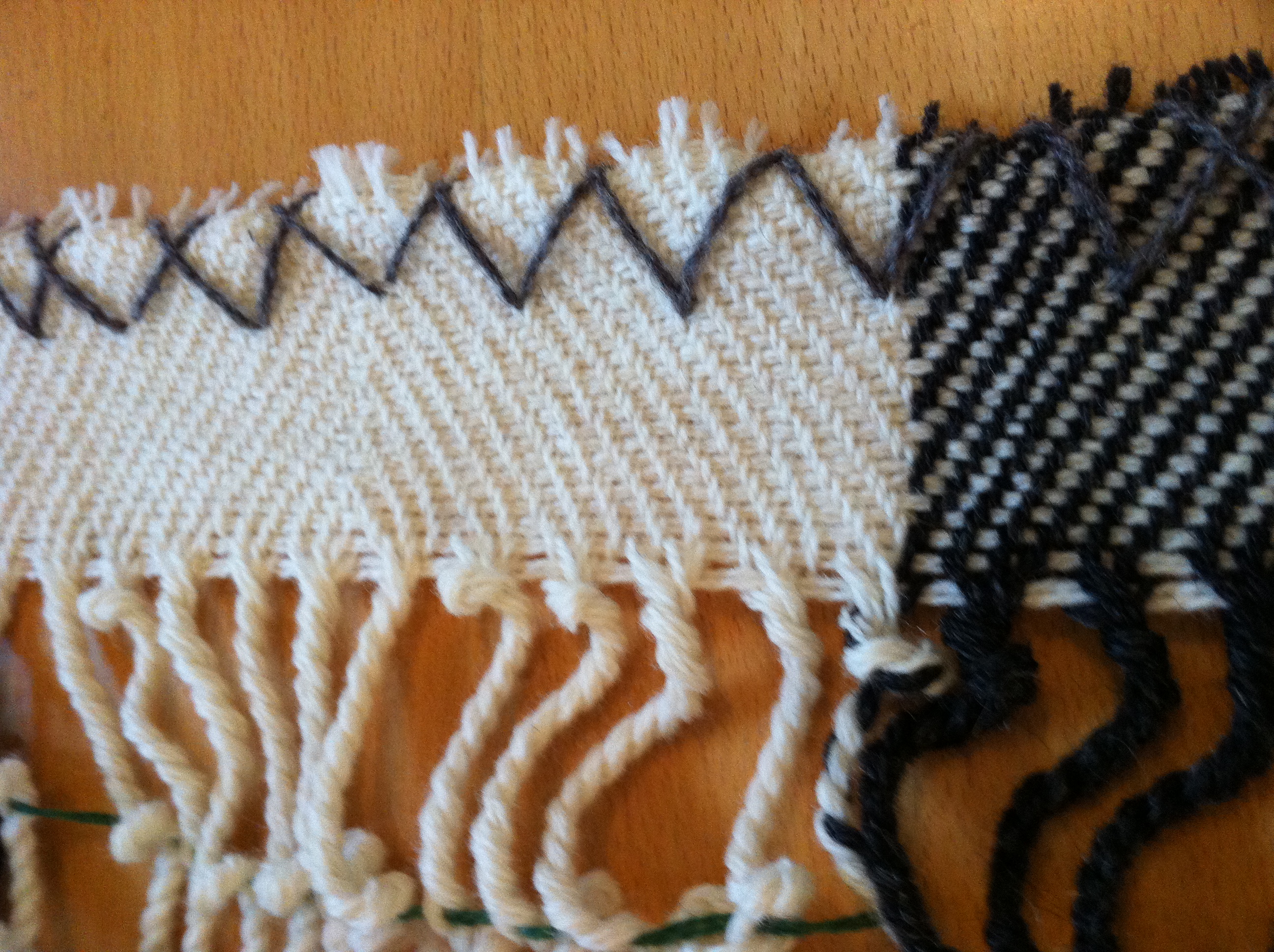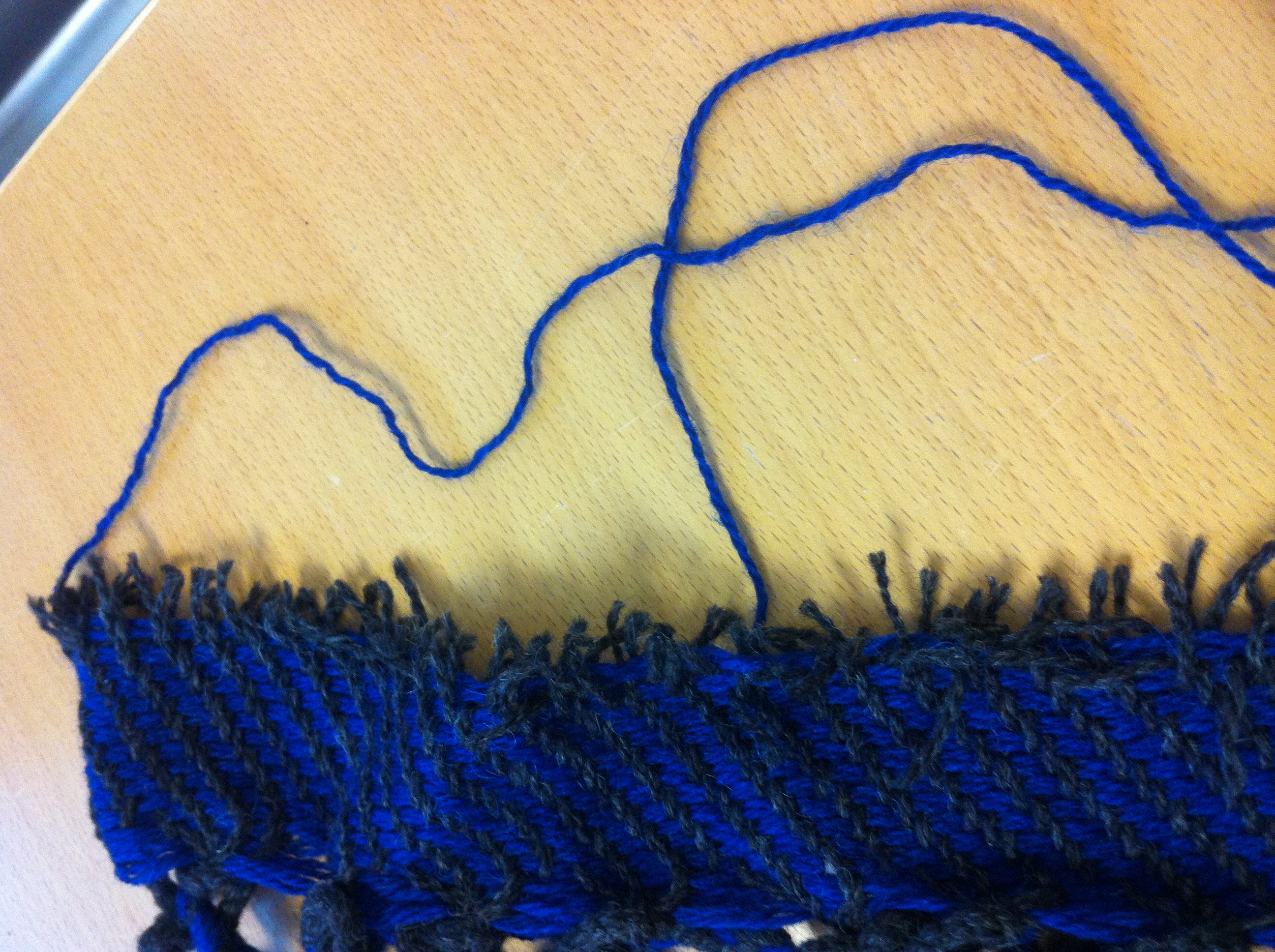 Kasta för hand eller på maskin Annars remsar inslaget upp sig! - Alla efsingar/varptrådar är avklippta jäms med sicksacken/kastningen.