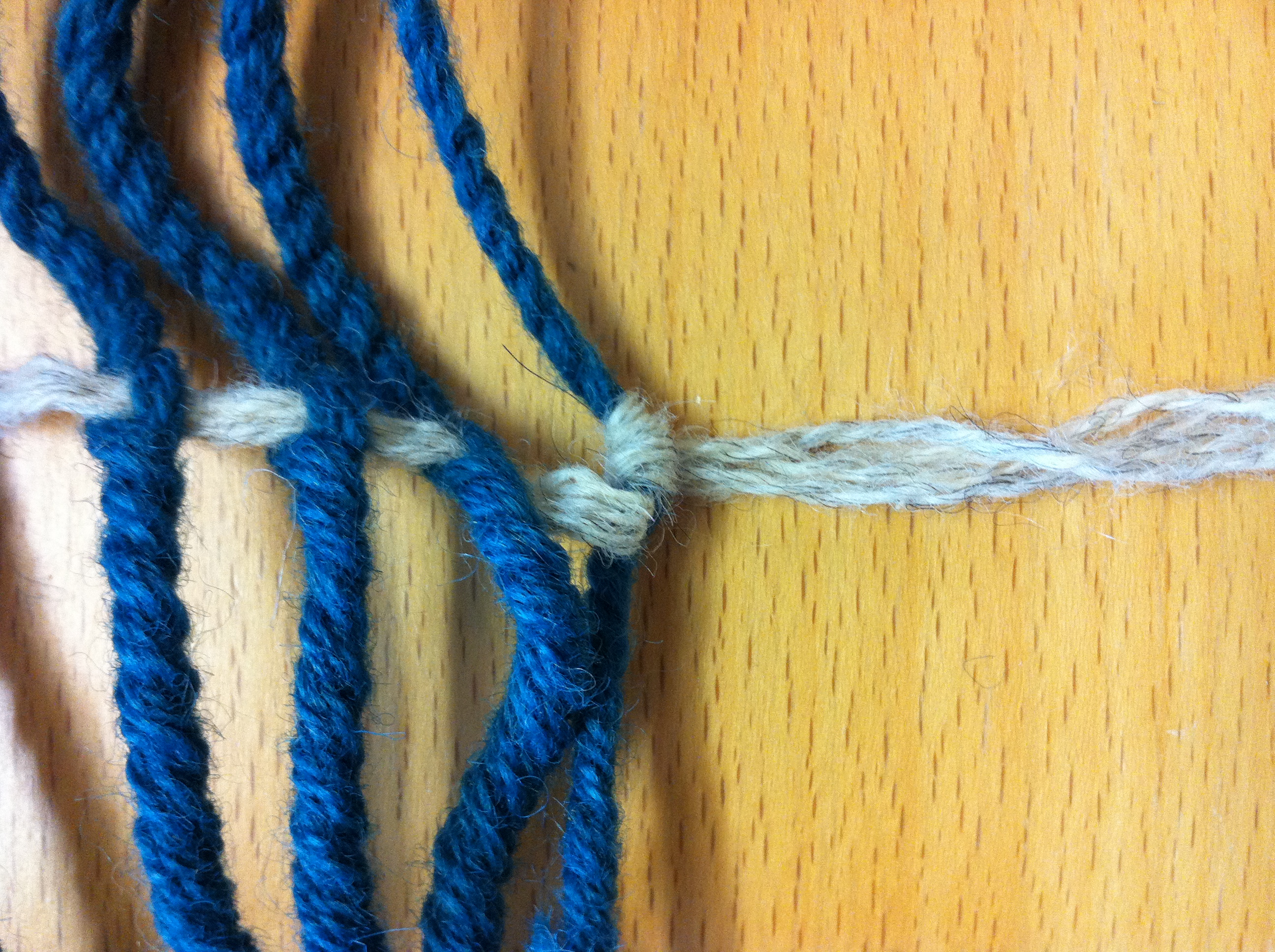 - Fixeringstråden(mellan fransarna) som är lika bred som väven är fäst och avklippt. Den ska vara av ullgarn. Inga lösa trådar får vara längre än 1 cm.